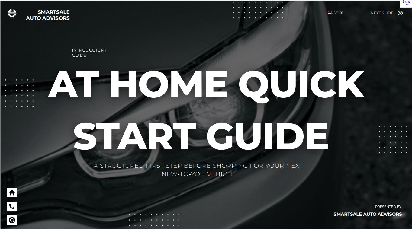 The At-Home Quick Start Guide explains the questions buyers ask most often before visiting a dealership.
